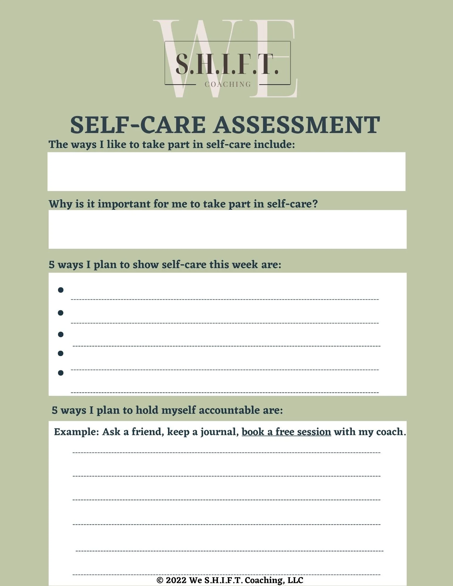 Take our customized self-care assessment to plan ahead for a step in the right direction. This assessment will be applied to our tailored self-care sessions that we will tackle together as a team.